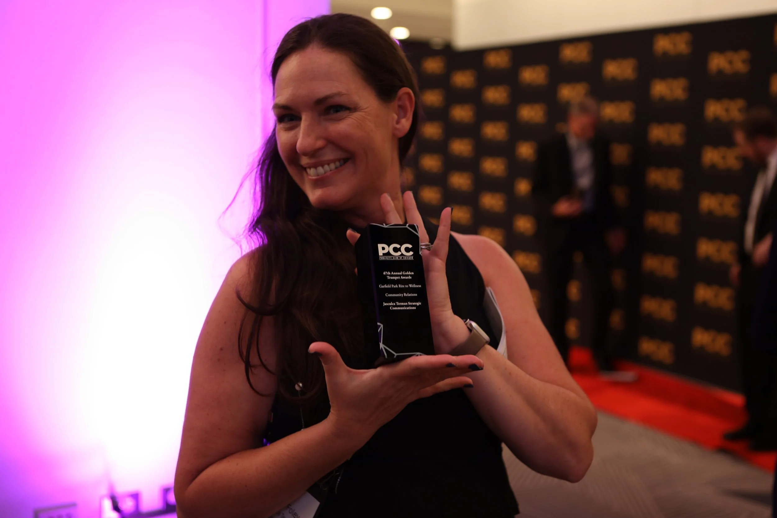JT’s COO, Lauren Foley, with our Silver Trumpet for Media Relations on our campaign with the Garfield Park Rite to Wellness Collaborative